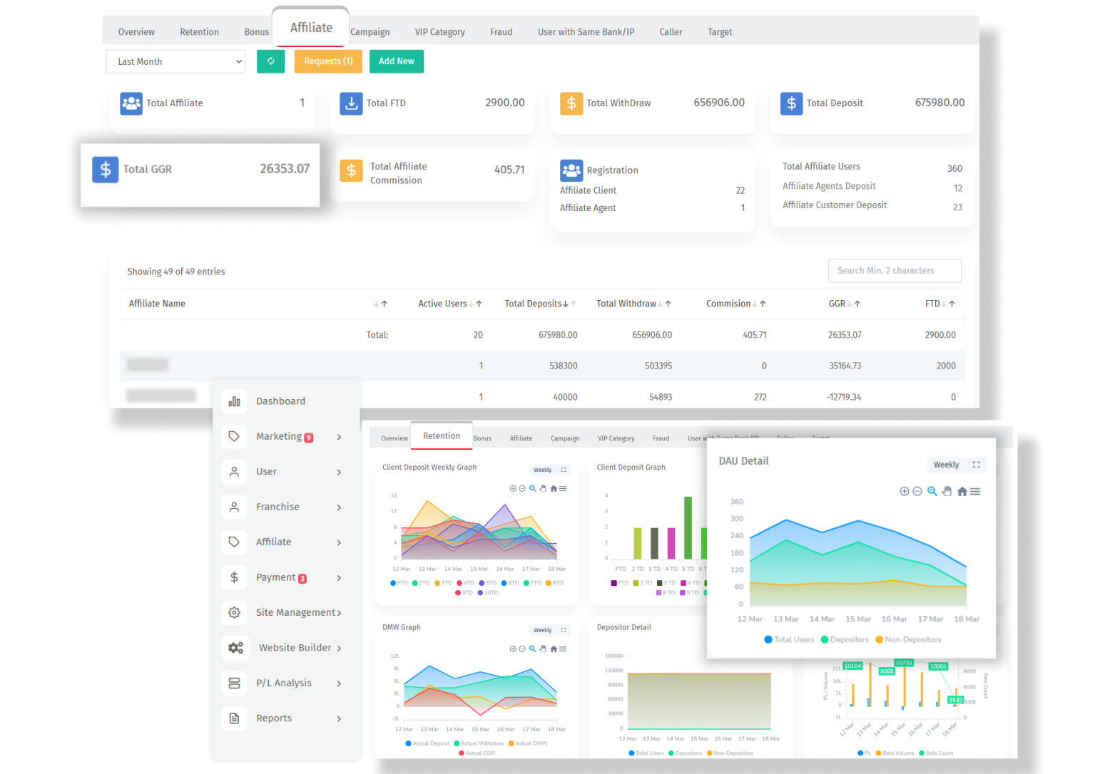 With GGF iGaming solutions, you get powerful real-time analytics tools to monitor player activity, betting trends, and revenue insights. Our white label online casino software allows you to track key metrics, optimize strategies, and make data-driven decisions to maximize engagement and profits.